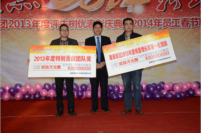 ??? 會議最后,集團(tuán)董事長兼總裁林云青先生發(fā)表新年寄語,林總裁首先對獲獎的員工表示了祝賀,對還有很多沒有獲獎的默默付出的優(yōu)秀員工、對全體康泰員工2013年付出的辛勤努力表示感謝,林總裁表示:“時(shí)光飛逝,白駒過隙,2013年已經(jīng)過去,在白熱化的市場競爭和房產(chǎn)打壓的影響下,我們?nèi)w康泰人不斷探索,尋找屬于我們的方向,我們公司全力以赴,建立了獨(dú)特的推廣營銷模式,通過一區(qū)一策的營銷管理理念,通過全員的共同努力,全面完成了20%增長的年度經(jīng)營目標(biāo),并基本全面完成公司的各項(xiàng)指標(biāo),這是公司全體員工共同努力才取得的結(jié)果,我代表公司股東、董事及管理團(tuán)隊(duì)衷心的感謝你們,希望全體康泰人在新的一年里,繼續(xù)保持務(wù)實(shí)勤儉、高效干練的先鋒工作作風(fēng),在新的一年里實(shí)現(xiàn)更大突破,取得更大成功。”
